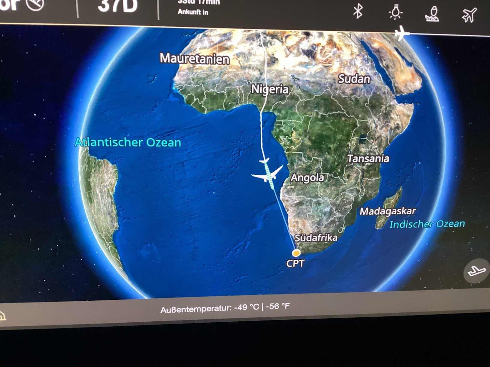Als die Durchsage „Boarding completed“ kam, sah ich mich um und entdeckte hinter mir eine Lücke. Da waren 2 Plätze nebeneinander frei. Ich schnappte mein Zeug und wechselte den Platz. So konnte ich mich während des 12 - stündigen Fluges wenigstens ein wenig bewegen und zwischendurch sogar fast 1 1/2 Stunden lang schlafen.